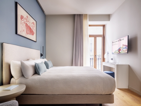 Dieses moderne Zimmer bietet auf 20 m² Platz für bis zu 2 Personen. Das Doppelbett (160x200) und das moderne Bad mit Dusche machen diese Unterkunft zum perfekten Ausgangspunkt, um Valencia zu erleben. Außerdem stehen dir nachhaltiger Kaffee, ein Wasserkocher, eine Minibar und ein Schreibtisch zur Verfügung. Hier hast du einfach alles, was du für maximalen Komfort und minimalen Stress brauchst.