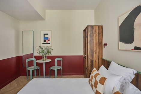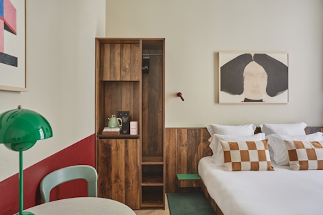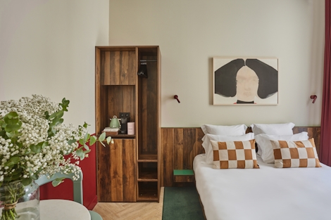 This comfortable room offers 19 sqm of space. Ideal for up to two people, its double bed (160x200) and modern bathroom with shower make this stay a perfect way to experience Paris. There’s also a desk, sustainable coffee, a kettle and a mini fridge, so you’ll have everything you need for maximum comfort and minimal stress.