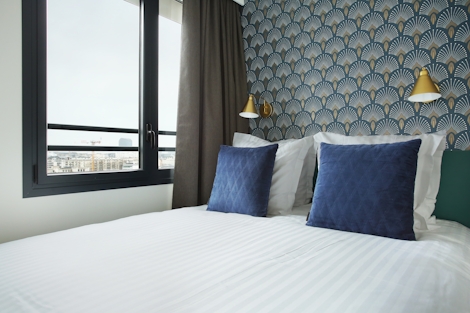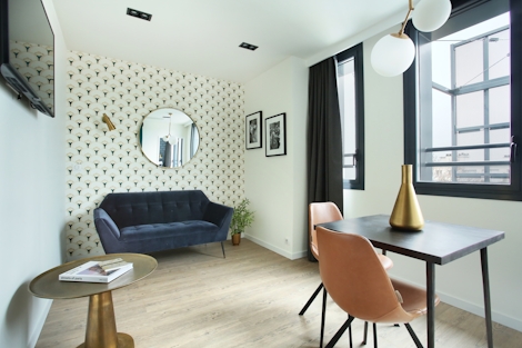This modern apartment with one bedroom offers 27 sqm of space. Ideal for up to two people, its double bed (160x200) and modern bathroom with shower make this stay a perfect way to experience Paris. It also offers a kitchen and a sofa, so you’ll have everything you need for maximum comfort and minimal stress.