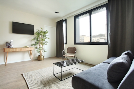 This spacious apartment with one bedroom offers 41 sqm of space. Ideal for up to four people, its double bed (160x200), sofa bed (160x200), and modern bathroom with shower make this stay a perfect way to experience Paris. It also offers a kitchen, so you’ll have everything you need for maximum comfort and minimal stress.