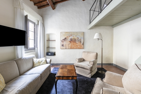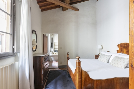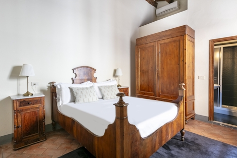 This comfortable apartment offers 63 sqm of space. Ideal for up to six people, its double bed (180x200), two single beds (90x200), double sofabed (160x200), and two modern bathrooms with shower make this stay a perfect way to experience Florence. There’s also a fully equipped kitchenette and a dining table, so you’ll have everything you need for maximum comfort and minimal stress.