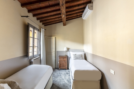 This spacious apartment offers 100 sqm of space. Ideal for up to six people, its double bed (180x200), four single beds (90x200), and two modern bathrooms with shower make this stay a perfect way to experience Florence. There’s also a fully equipped kitchen and a dining table, so you’ll have everything you need for maximum comfort and minimal stress.