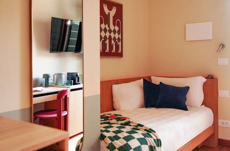 This comfortable room with balcony offers 11 sqm of space. Ideal for 1 person, its single bed (90x200) and modern bathroom with shower make this stay a perfect way to experience Venice. The room also offers sustainable coffee, a kettle and a mini fridge, so you’ll have everything you need for maximum comfort and minimal stress.