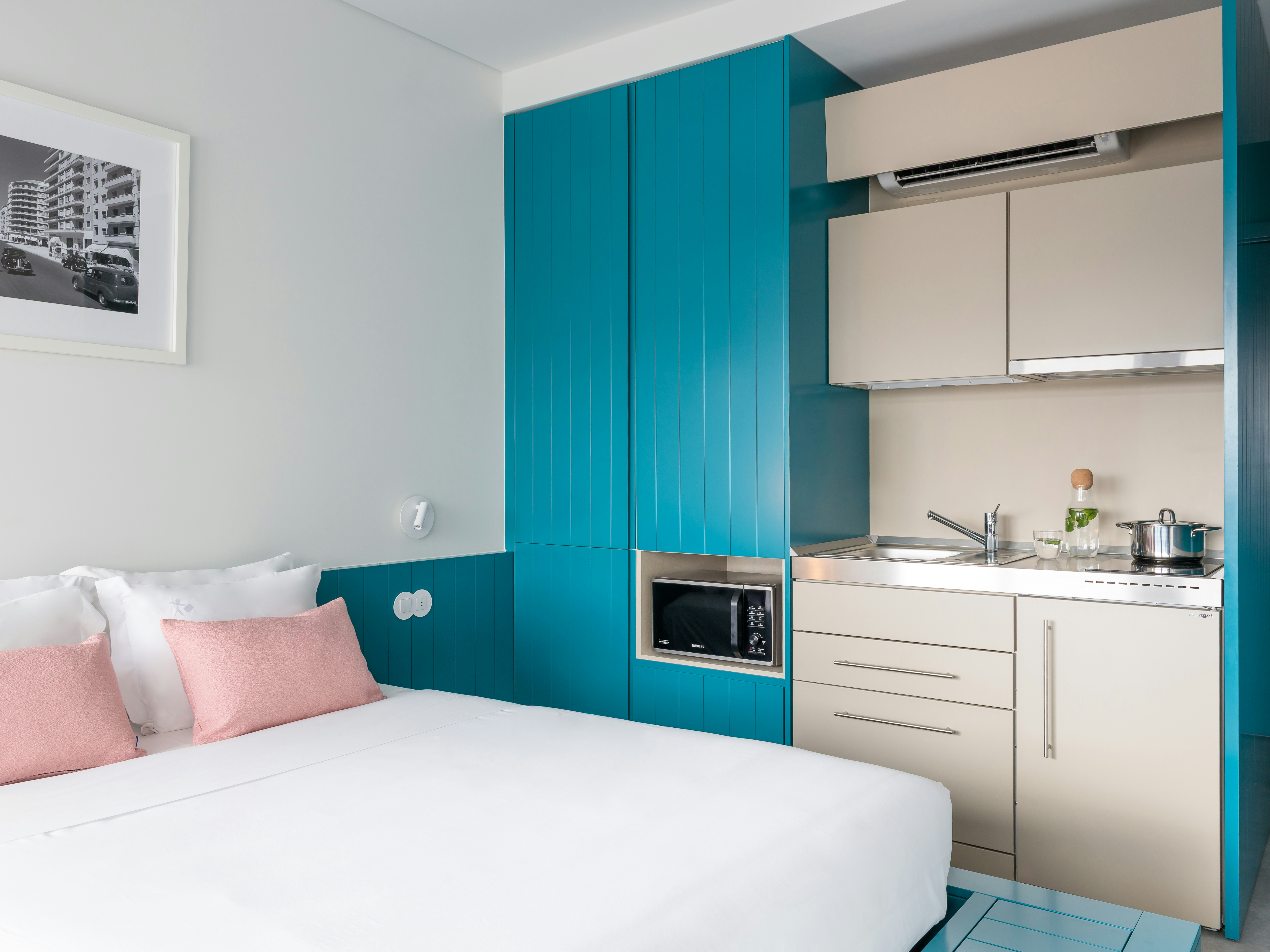 Tired of boring, soulless hotel rooms? We feel you. That’s why we’ve put all our creative energy into making our Lisbon apartments something special. From the paint colour to the homely chair you’ll love sitting in, everything’s been thoughtfully designed and arranged to be aesthetically (and dare we say, emotionally?) pleasing.