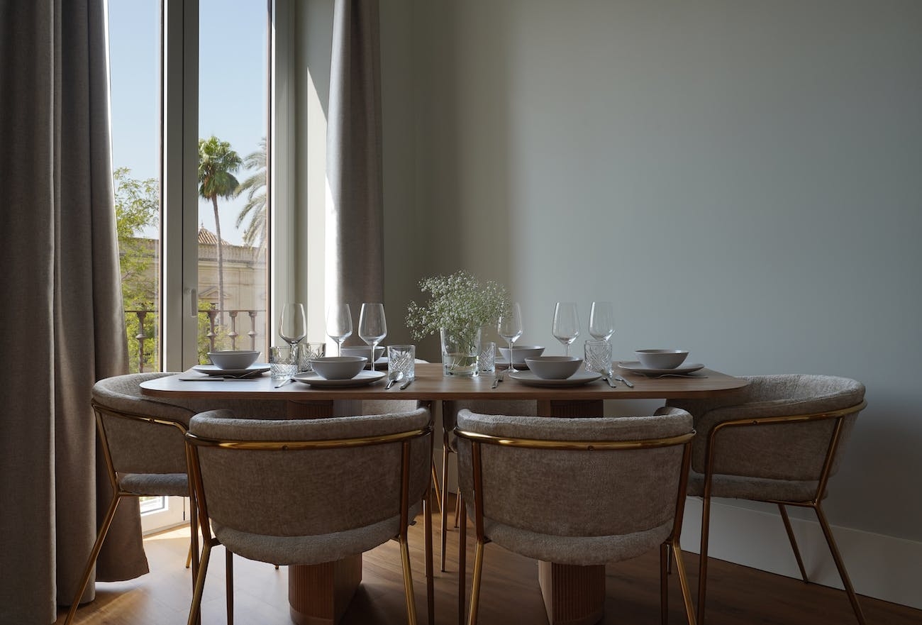This 83 sqm apartment is ideal for up to 6 people. The space features comfortable king-size (180x200) and queen-size (160x200) beds, a spacious living area and a colourful private terrace. The living area evokes Mediterranean vibes, thanks to warm furniture colours and wooden dining tables. Here guests can relax after a long day around Seville and eat delicious Andalusian dishes. For maximum comfort, lay on the private terrace, hold a glass of tinto de verano and enjoy Sevilla’s warm nights. The apartment also includes an equipped kitchen and a spacious bathroom.