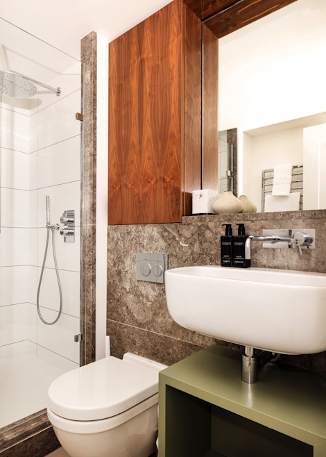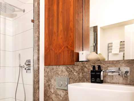 - Modern bathroom with shower